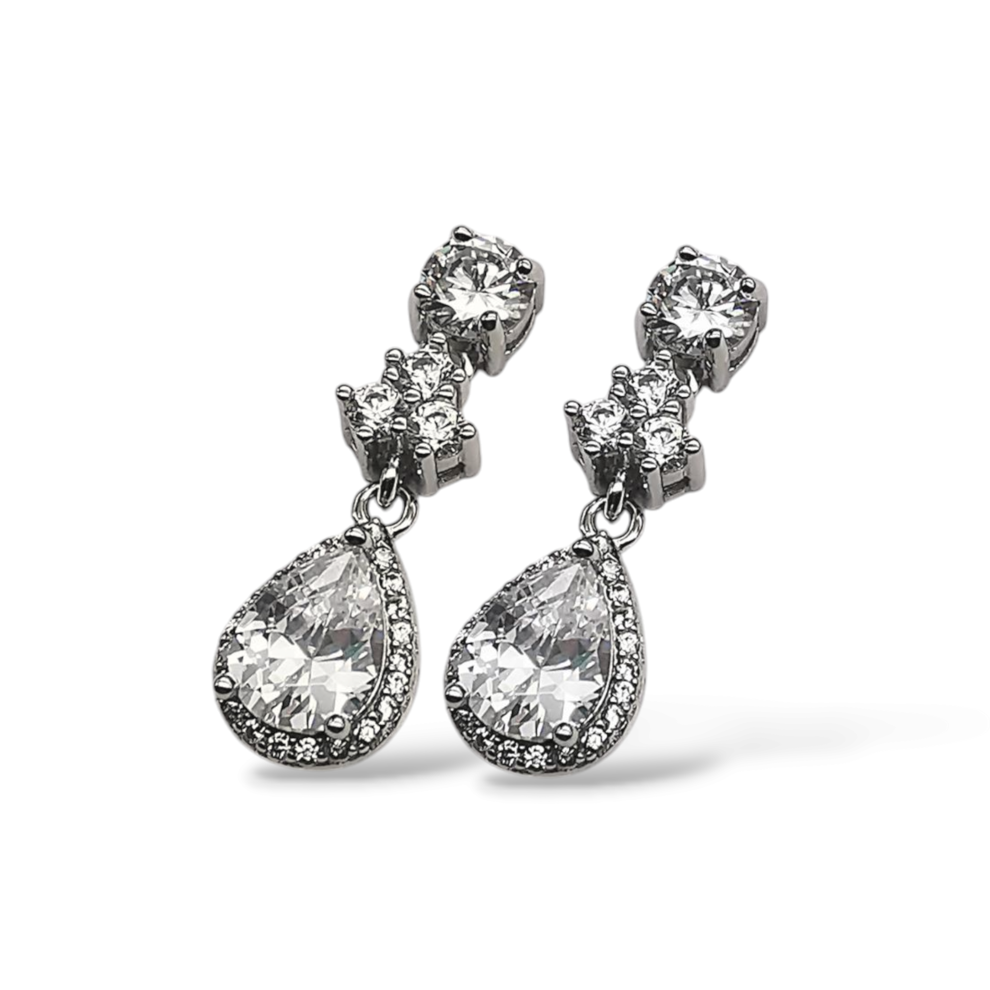 Σκουλαρίκια απο ασήμι 925 με ζιργκόν πέτρες.Κατάλληλα για γάμο και οποιαδήποτε εκδήλωση.Μήκος 2,4cm
