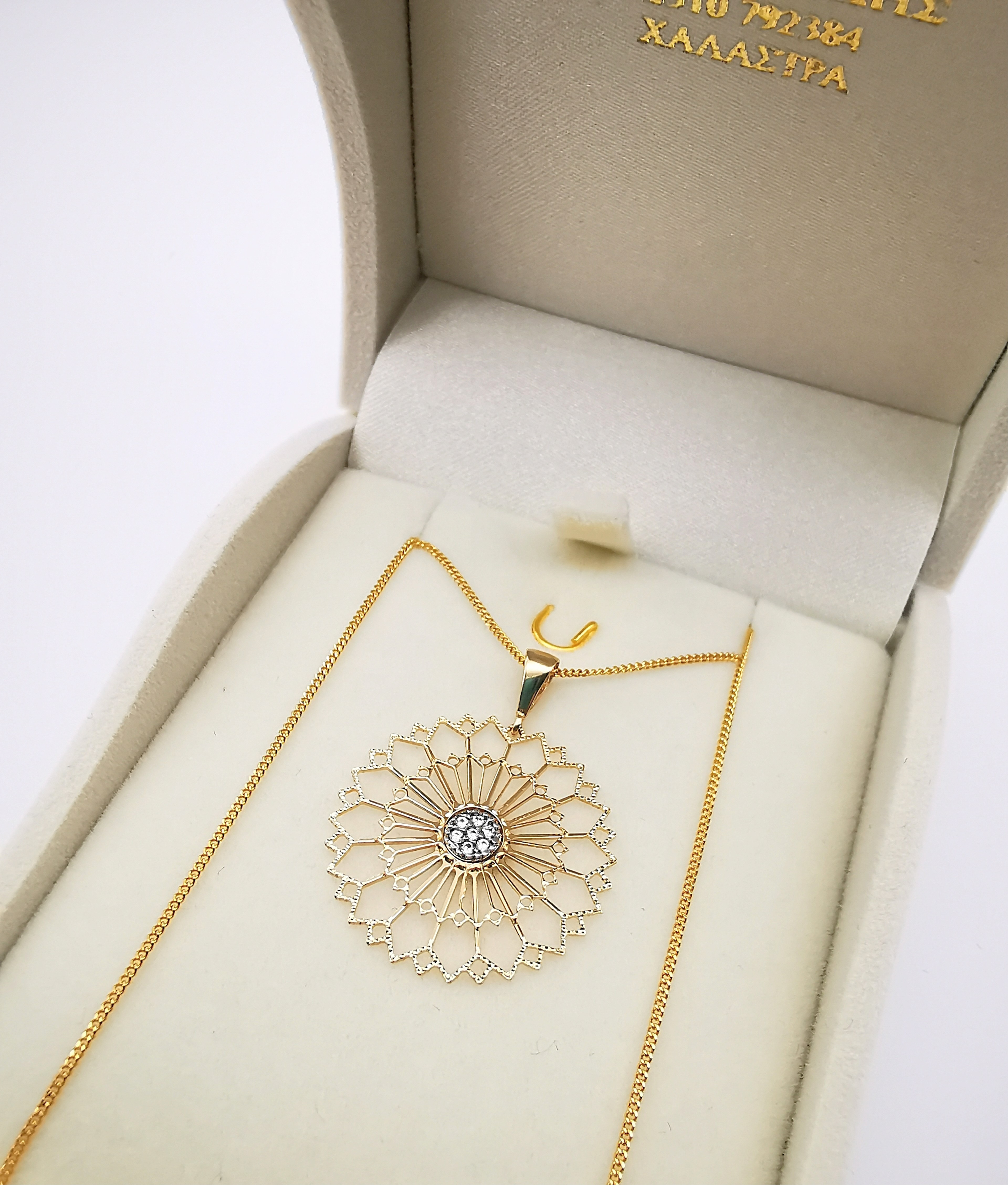 Μενταγιόν Ιταλικής κατασκευής από χρυσό 14άρων καρατίων με ζιργκόν πέτρες