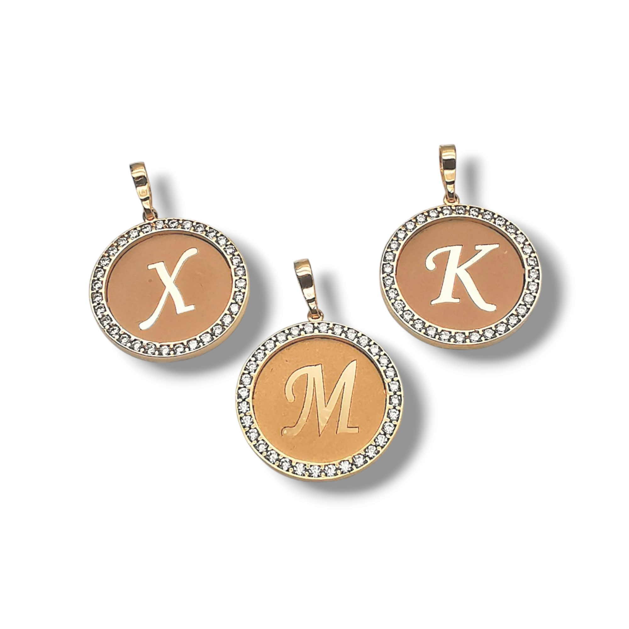 Μενταγιόν μονογράμματα από κίτρινο χρυσό 14άρων καρατίων με ζιργκόν πέτρες