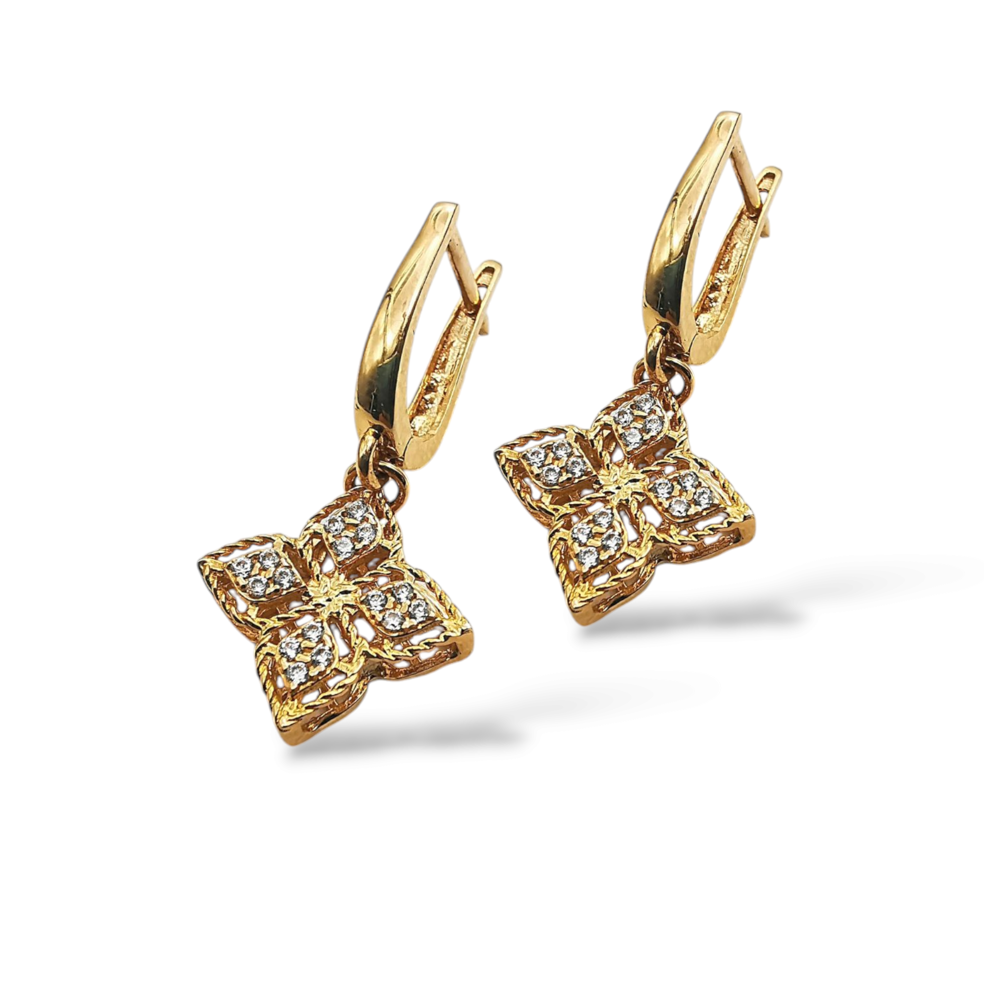 Σκουλαρίκια από κίτρινο χρυσό 14άρων καρατίων με ζιργκόν πέτρες.Συνολικό ύψος 2,8cm,φάρδος 1,4cm.Βάρος 4γρ.
