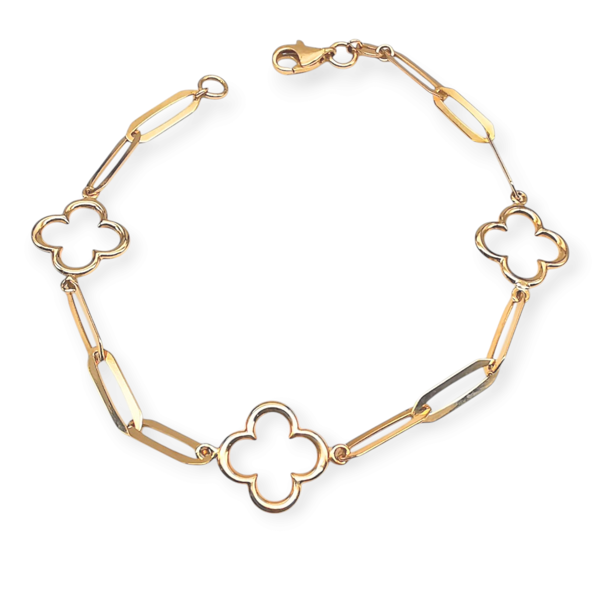 Γυναικείο βραχιόλι με τρία στοιχεία βάν κλίφ στην αλυσίδα 14άρων καρατίων ιταλικής κατασκευής και σχεδιασμού,βάρους 2,45γρ.